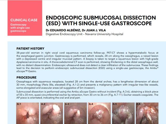 Learn how the single-use aScope Gastro endoscope’s angulation capability facilitated submucosal dissection and mucosal resection 28 cm from the dental arches.