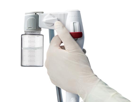 The sampler solution integrates seamlessly with Ambu aScope 5 Broncho. It clicks right on and allows you to switch between suction and sampling at the turn of a knob. This enables you to operate it without assistance and gives you a high degree of control when sampling the lungs.